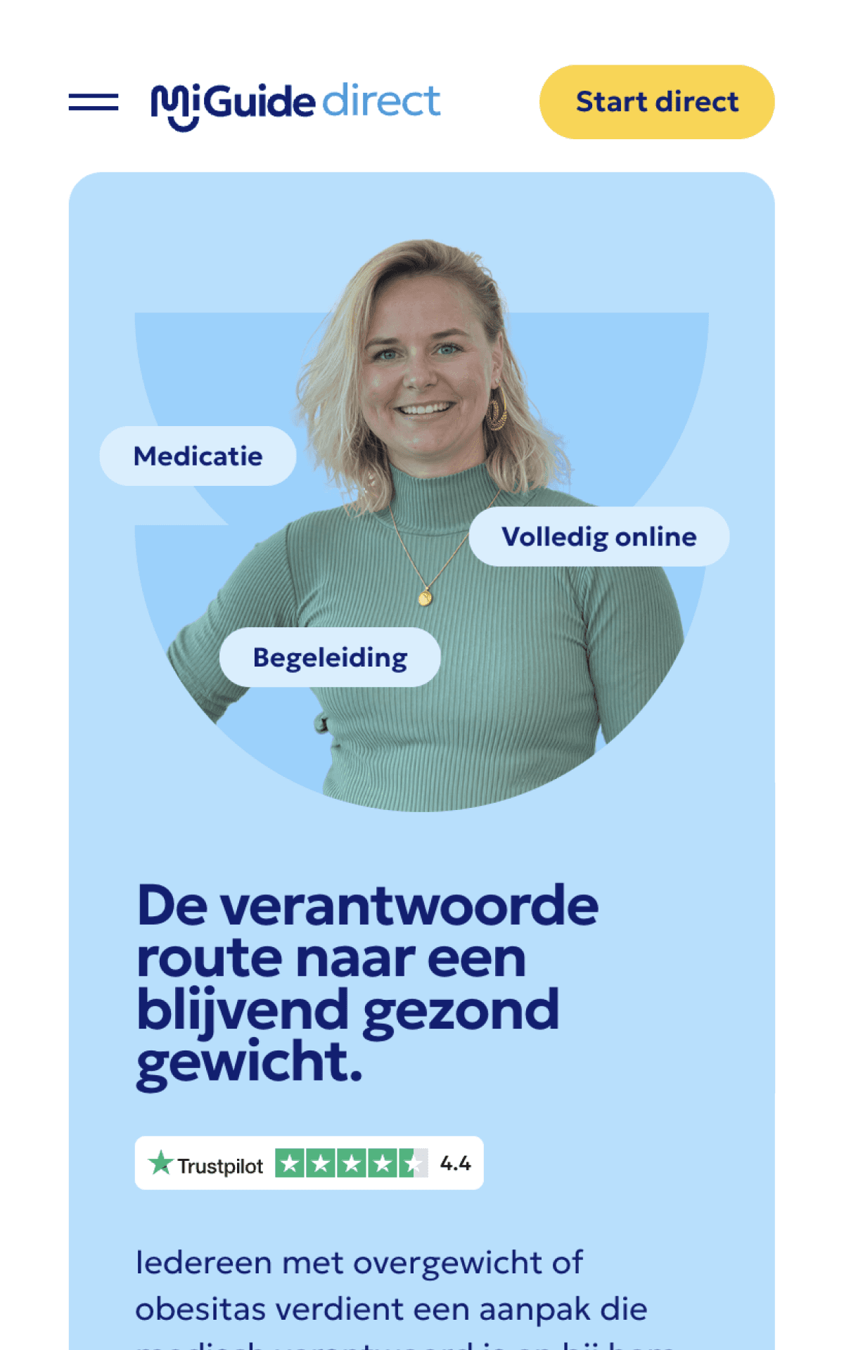 MiGuide is een zorgorganisatie die mensen met overgewicht en obesitas helpt om grip te krijgen op hun gezondheid. Met een combinatie van leefstijlbegeleiding, coaching en digitale ondersteuning werkt het merk aan duurzame gedragsverandering.