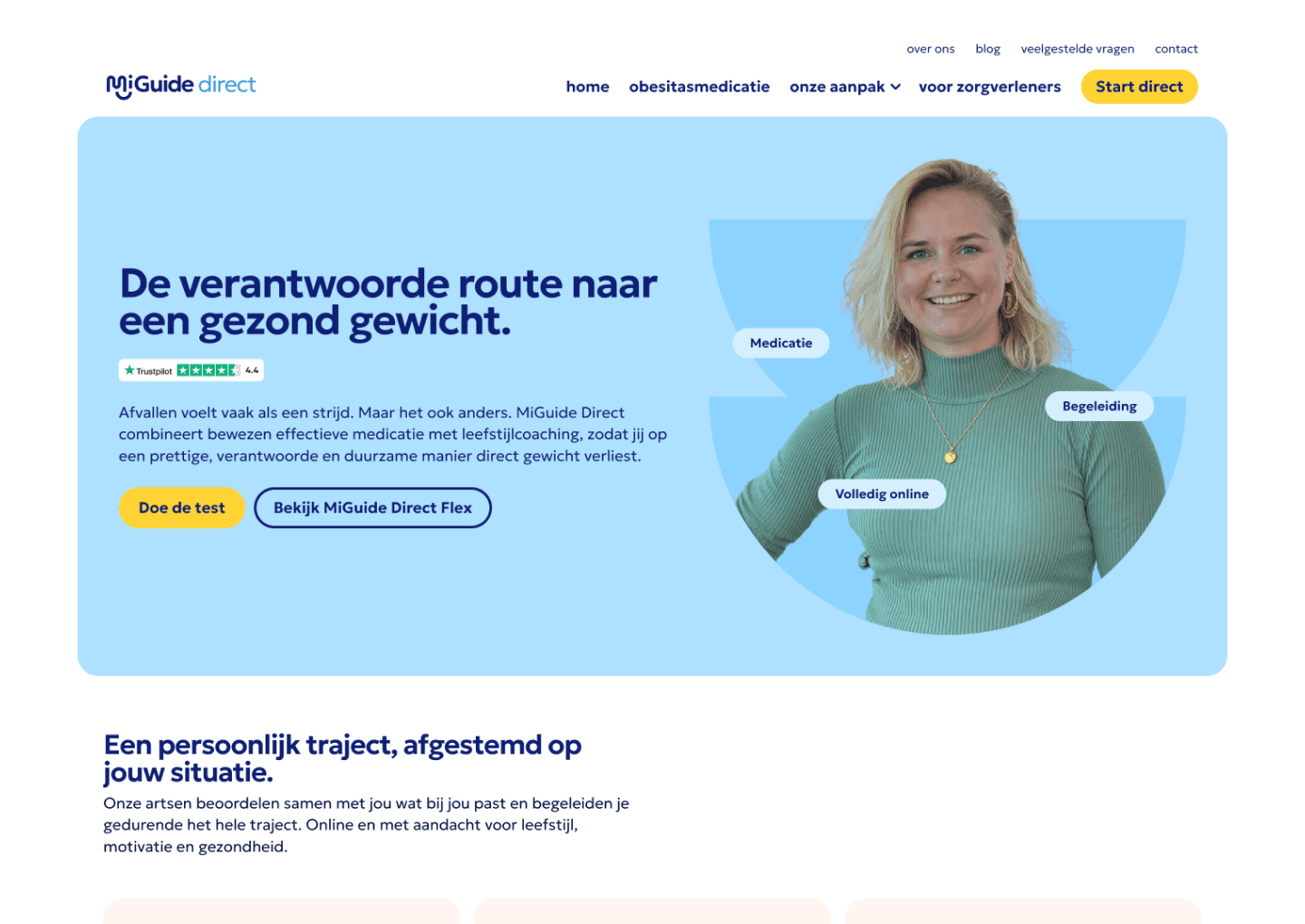 Met MiGuide Direct introduceerde de organisatie een nieuw zorgpad waarin intensieve leefstijlcoaching wordt gecombineerd met intensieve obesitasmedicatie. Niet als losse oplossing, maar als geïntegreerde aanpak waarin voeding, beweging, slaap en gedrag centraal blijven staan.